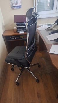 Покупали в кабинет директора. Выглядит очень презентабельно за счет обилия хрома и качественной кожи. Это не дешевый пластик, тут стальной каркас, что внушает доверие.<br /> Особенно порадовали полиуретановые ролики - по паркету едут бесшумно и не оставляют следов.